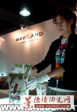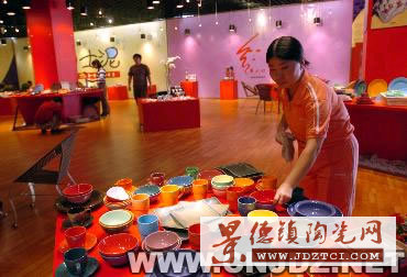 10月11日,景德鎮(zhèn)本地參展商在2005中國(guó)景德鎮(zhèn)國(guó)際陶瓷博覽會(huì)上布展。 10月12日,首屆中國(guó)景德鎮(zhèn)國(guó)際陶瓷博覽會(huì)將在江西省景德鎮(zhèn)市開幕,來(lái)自23個(gè)國(guó)家和地區(qū)及全國(guó)9大產(chǎn)瓷區(qū)的參展商、采購(gòu)商、陶藝家20000多人將參加本次博覽會(huì)。