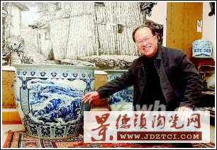 在故宮35萬件大大小小的瓷器中,有對放在太和殿兩側(cè)的青花瓷缸以直徑80厘米、高度80厘米的超大容量而引人注目,專家稱其“世界第一大瓷缸”。近日,著名畫家、西安美院教授戴希斌在景德鎮(zhèn)御窯燒制了一對比它們“肚量”還大的瓷缸。還首次把黃土高原風(fēng)光搬上了青花瓷器。“我在景德鎮(zhèn)御窯燒的缸比故宮的還大!”昨天,戴教授在電話里興奮地向記者講述著他那寶貝瓷缸的趣事。下午,記者來到他的工作室,進(jìn)門就見到兩口青花瓷缸“雄赳赳”地“盤踞”在客廳,大得足夠放進(jìn)四五個孩子。伸手到缸里一拍,嗡地一聲洪亮如鐘。戴教授介紹:別看他這對瓷缸一般大,都是直徑86厘米,高度86厘米。但它們其實(shí)有區(qū)別,是一“雌”一“雄”呢!按啤钡陌l(fā)出的聲音清脆、“雄”的發(fā)出的聲音低沉。見記者好奇,他又解釋:雖然肉眼看不出來,其實(shí)“雄”的比“雌”的要厚1~2毫米,厚的部分是在拉胚時增加的。