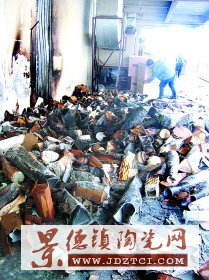 見習(xí)記者張清記者陳陳城市快報(bào)昨日中午11時(shí)許,大胡同萬隆商業(yè)中心內(nèi)一個(gè)二樓平臺(tái)突然起火,平臺(tái)上堆放的部分花瓶瓷具在大火中被燒毀。11時(shí)40分,消防員撲滅大火后,多名工作人員開始清理被燒毀的瓷具碎片和紙箱殘片。