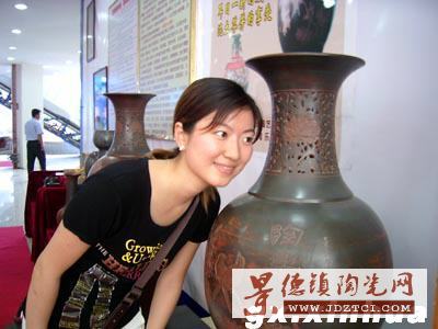 25日在廣西欽州市物流產(chǎn)品展示會上,記者看到了這套古色古香的花瓶音響。音響呈古銅色,高72厘米、最大直徑40厘米。