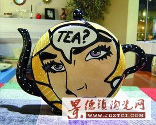 一個茶壺,一個西方女人的臉,濃眉大眼,鮮紅欲滴的嘴唇,非常醒目地突顯在那里。這是還沒等我進(jìn)店門就已經(jīng)聚焦了我目光的東西。
