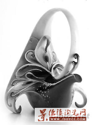 。玻埃埃蹦辏惲⒑阍谇甏啥景德鎮(zhèn)興建了占地約7.5萬平方米的法藍(lán)瓷(FRANZ)工業(yè)園區(qū)。FRANZ是陳立恒的英文名字,意含無拘無束,充滿創(chuàng)意。陳立恒是臺(tái)灣人,問他為什么把生產(chǎn)基地建在景德鎮(zhèn)?陳立恒說,有一次在歐洲看到一張地圖,關(guān)于中國只標(biāo)了3個(gè)地名:北京、西安、景德鎮(zhèn),可見作為瓷都景德鎮(zhèn)早已聲名遠(yuǎn)揚(yáng),更何況景德鎮(zhèn)擁有創(chuàng)建中國陶瓷名牌必不可少的各種資源。法藍(lán)瓷的設(shè)計(jì)以中華傳統(tǒng)文化為底蘊(yùn)并引進(jìn)國際最新的設(shè)計(jì)觀念!褒R物天地美,逍遙仁者心!比逖诺年惲⒑銕ьI(lǐng)他的設(shè)計(jì)團(tuán)隊(duì)以大自然為創(chuàng)作主題,設(shè)計(jì)生產(chǎn)出各式花草與動(dòng)物系列作品,滿足當(dāng)代人回歸自然與品味生活的追求。陳立恒說,他們力圖將東方美學(xué)哲思融入瓷藝中,使人借以體會(huì)萬物之美,獲得生命哲學(xué)的頓悟,修養(yǎng)出優(yōu)雅自在的仁者風(fēng)范。在工藝方面則承襲了景德鎮(zhèn)的傳統(tǒng)技藝,無論是立體造型的成型或手工繪彩的過程,都保留了景德鎮(zhèn)瓷器細(xì)致與復(fù)雜做工的風(fēng)格,以展現(xiàn)瓷器優(yōu)雅細(xì)膩與華麗的本質(zhì),每件作品都經(jīng)過上百道工序才得以完成。陳先生說,打造國際名牌,產(chǎn)品的質(zhì)量便要符合國際標(biāo)準(zhǔn),材料研發(fā)須以維護(hù)工業(yè)安全及環(huán)保為導(dǎo)向。為能精確掌握每一細(xì)節(jié),他們充分利用高科技為輔助,把產(chǎn)品配方、各種標(biāo)準(zhǔn)、流程、作業(yè)方法,甚至某項(xiàng)改善記錄均輸入計(jì)算機(jī),作為管理的重要參考和依據(jù)。陳立恒如數(shù)家珍地告訴我:“法藍(lán)瓷現(xiàn)已進(jìn)駐歐美高檔百貨公司精品展館,改變了百年來陶瓷產(chǎn)業(yè)由歐洲名窯獨(dú)領(lǐng)風(fēng)騷的歷史。法藍(lán)瓷受到無數(shù)名流與品位人士的推崇,如英國巨星艾爾頓·約翰、美國前總統(tǒng)克林頓等都有收藏。”問他榮獲的20個(gè)獎(jiǎng)牌中最看重哪兩個(gè)?“當(dāng)然是英國零售專賣店協(xié)會(huì)頒發(fā)的‘最佳陶瓷禮品獎(jiǎng)’和‘景德鎮(zhèn)陶瓷博覽會(huì)金獎(jiǎng)’!标惲⒑悴患偎妓鞯卮鸬。我想,前者說明法藍(lán)瓷在海外人氣已很旺,后者是因?yàn)槟茉诖啥及蔚妙^籌不簡單吧。