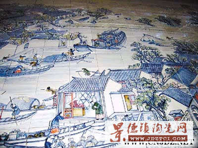 好一幅巨型的《盛世滋生圖》!只見一塊塊剛出窯的瓷板上浮現(xiàn)出一幅清乾隆年間古蘇州城商旅如織、船楫相連的繁華畫卷。記者昨天在中山大學(xué)潮州陶瓷歷史文化研究院獲悉,歷經(jīng)三年時間,仿自清代宮廷畫師徐揚(yáng)的名作《盛世滋生圖》的巨型浮雕瓷壁畫即將問世,這幅瓷壁畫長達(dá)136米,高4米,由3800塊瓷版拼接而成,面積達(dá)530平方米,將原作放大了100倍(下為局部圖)。