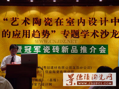 由深圳室內設計師協(xié)會主辦,冠軍陶瓷協(xié)辦的“藝術陶瓷在室內設計中的應用趨勢”專題學術沙龍4月28日在格蘭云天酒店隆重舉行。出席嘉賓包括深圳室內設計師協(xié)會副會長兼秘書長趙慶祥、深圳市室內設計師協(xié)會高級顧問、中國建筑學會室內設計分會副會長、同濟大學博士生導師來增祥教授、信益陶瓷副總經理王茂山先生、華耐·立家連鎖總裁賈鋒先生、粵冠建材公司總經理王繼紅先生等,同時出席發(fā)布會的還包括來自行業(yè)內近百位設計師以及媒體代表。