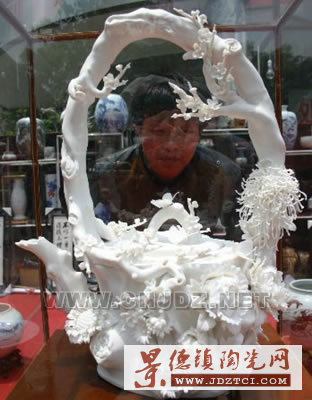 5月14日,在南京建寧路舉辦的景德鎮(zhèn)陶瓷精品展上,一把50厘米高的《福滿乾坤》白色陶瓷茶壺吸引了不少市民的目光。這把陶瓷茶壺以梅花壺為主體,壺身鑲有菊花、牡丹、向日葵,做工精細,售價達到1.8萬元。