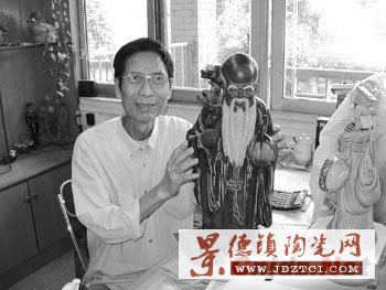 圖為中國工藝美術(shù)大師黃松堅(jiān)對(duì)幾十年前創(chuàng)作的“壽星公”傾注了深厚的感情,溢于言表。