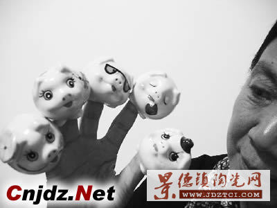 昨日上午,一位女士正向筆者展示用陶瓷工藝制作而成、形態(tài)各異的小豬飾品。