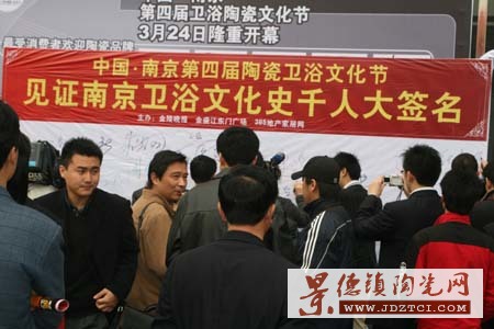 24日上午10點,由金陵晚報主辦,金盛國際家居江東門店承辦的中國.南京第四屆衛(wèi)浴陶瓷文化節(jié)在金盛國際家居·江東門廣場盛大開幕。開幕儀式上,10家“最受消費者歡迎衛(wèi)浴品牌”、10家“最受消費者歡迎陶瓷品牌”以及10家“組委會推薦品牌”在主持人的宣布下先后誕生。南京市消費者協(xié)會、南京市裝飾行業(yè)協(xié)會等相關部門領導為上述單位授牌。開幕儀式結束后,各領導和行業(yè)內(nèi)人士在見證南京衛(wèi)浴文化史千人大簽名的簽名板上留下了他們的名字,這些簽名寄托了他們衛(wèi)浴陶瓷文化節(jié)的希望。