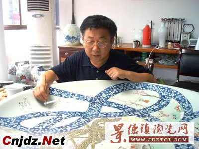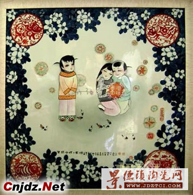 王采是省陶研所的總工程師,行政事務繁忙,平時沒有多少時間搞創(chuàng)作,而且,他還擔任市農(nóng)工黨副主委和市政協(xié)常委,社會活動也不少。但他得知大賽消息后,立即決定參賽,不僅是要展示省所的創(chuàng)作實力水平,傾吐對香港同胞和祖國統(tǒng)一大業(yè)的熱情;他這個陶瓷世家之子,還一直想憑自身實力拼搏,走出父親王錫良大師的蔭影,證實自己的價值能力。他化了近兩個月的時間來創(chuàng)作這件作品,曾經(jīng)考慮過四種方案:一種是畫中國地圖中的香港和紫荊花;一種是畫香港各種代表人物;一種是畫香港的標志性建筑……他帶的兩個學生也拿出了幾個方案,都覺得不合適。最后,他才構(gòu)思出后來獲獎的這件作品平面圖:方瓷板上,四面青花的香港區(qū)花紫荊花;圖中間三個兒童構(gòu)成“10”字形;以混水青花淺繪的港區(qū)圖上,散布著幾只和平鴿;圖四角中各鑲嵌了一只圓形的豬年紅色剪紙圖……