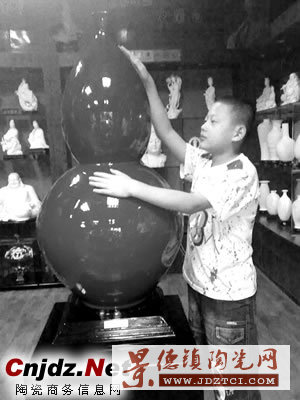 創(chuàng)作者許瑞峰說,葫蘆象征著“!,歷來是陶瓷藝術(shù)家們喜歡選擇的一個(gè)造型。他是經(jīng)過多年的研究和探索,才成功燒制出這件大型手拉坯高溫紅釉葫蘆瓶的。