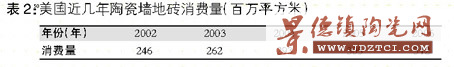 從表2的統(tǒng)計(jì)數(shù)據(jù)可以看出,從2002年至2006年5年時(shí)間里,美國消費(fèi)陶瓷磚的數(shù)量是逐年增長的。