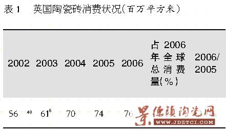 作為發(fā)達(dá)國家的代表之一英國,陶瓷磚產(chǎn)業(yè)已列入限制與淘汰的行業(yè),其消費(fèi)主要依賴進(jìn)口。