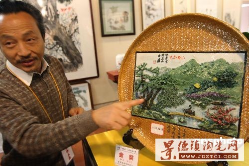 瓷板繪畫藝術作品是中國陶瓷藝術不斷創(chuàng)新的代表。本展中,以寫實為特點的景德鎮(zhèn)瓷板繪畫代表作“潮汛”、“春蠶之吃”等精品首度展出,令觀者贊嘆不已。這些作品在傳統(tǒng)陶瓷釉面色彩和立體制作上均有大膽探索和突破,并取得成功,成為景德鎮(zhèn)在繼承與創(chuàng)新過程中真實寫照。