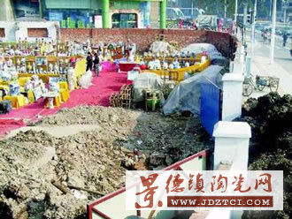 昨天上午10點(diǎn)多,記者聞?dòng)嵹s到原鐘樓區(qū)政府地段時(shí),只見(jiàn)通道口已被一人多高的泥土遮擋,十來(lái)名自稱(chēng)來(lái)自景德鎮(zhèn)的客商在不住發(fā)牢騷,不時(shí)有客商攀上泥堆往返于展位和街區(qū)。