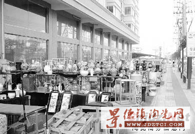 在關刀坪路采訪完后,記者來到贛州市奧林匹克廣場。這里正在舉行贛州市春季招聘大會,整個廣場人山人海,熱鬧非凡。在廣場一角的景德鎮(zhèn)陶瓷展銷點也沾了不少光,有不少人光臨。這里展出的景德鎮(zhèn)陶瓷品種比關刀坪那邊多,一些陶瓷標價上千元甚至上萬元。展銷的品種達到1000多種,有日用瓷、裝飾瓷、藝術瓷、雕塑瓷、仿古瓷等,“只要景德鎮(zhèn)有的瓷器,我們這里都有,而且我們都是廠家直銷,可以絕對保證質高價優(yōu)。”一名銷售商自豪地對記者說。但這些擺賣瓷器的攤位陳設很簡陋,大部分的小件瓷器擱放在貨架上,而標價上萬元的大件瓷器卻隨意在地上沿著通道擺放。