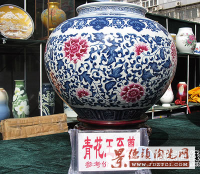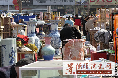 記者一早來(lái)到博物館廣場(chǎng),這里已經(jīng)一字排開了數(shù)十個(gè)陶瓷攤點(diǎn),展賣瓷器種類繁多!案毁F平安”大花瓶高達(dá)2米、重約150斤,花費(fèi)工人一個(gè)月時(shí)間才制作完成,“年年有余”、“百子歡慶圖”東瓜罐,據(jù)說(shuō)全是手工繪制的圖案,“水點(diǎn)桃花”大盤、“漁家樂(lè)”瓷塑、瓷畫、瓷屏風(fēng)等各種藝術(shù)觀賞瓷、日用瓷叫人眼花繚亂。顏色釉瓷、粉彩瓷、仿古瓷、青花瓷各領(lǐng)風(fēng)騷。其中青花瓷器有盤、瓶、香爐、執(zhí)壺、罐、碗、杯等。青花瓷,胎體厚重,裝飾圖案繁復(fù),紋飾層次多,成為景德鎮(zhèn)的傳統(tǒng)名瓷之冠。但是現(xiàn)場(chǎng)購(gòu)買的人卻很少,大多數(shù)人只是來(lái)問(wèn)問(wèn)價(jià)格。