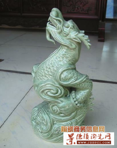 據(jù)藝術(shù)中心的業(yè)務(wù)主任李銀茍介紹,作品采用了兩種不同的色釉表現(xiàn),一種是影青釉,釉面光潔,如玉一般溫潤(rùn);一種是裂紋釉,充分表達(dá)出龍的力量感。