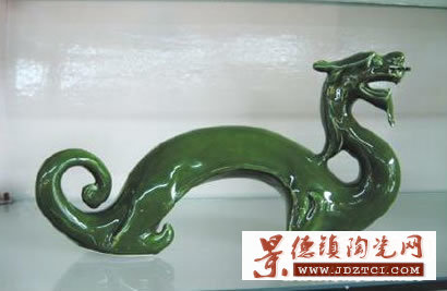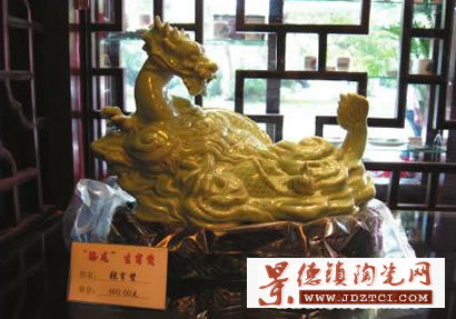 在陶院副教授、著名陶瓷雕塑家劉超鴻的工作室,記者看到了一尊高約50厘米的生肖龍瓷雕,瓷雕表現(xiàn)的是一條巨龍正從水中躍起,高高仰起著龍頭,給人一種傲慢的感覺。讓人感到新奇的是,這條龍的前爪上各戴了一條珠手鏈,改變了傳統(tǒng)龍的形象,給人全新的感受。