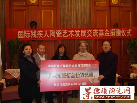 11月22日下午,景德鎮(zhèn)市殘聯(lián)殘疾人陶瓷藝術(shù)中心喜氣洋洋,殘疾人陶藝家代表李貴鎮(zhèn)、徐雪斌、周遇貴、胡明華、戢影華分別從市殘聯(lián)理事長馮柳青的手中接過“愛心捐贈證書”。該證書分量極重,由中國友好和平發(fā)展基金會、市殘聯(lián)共同頒發(fā)。