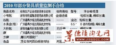 近日廣東省工商局公布了2010年廣東省流通領域日用陶瓷商品質量監(jiān)測情況,在抽查的120款日用陶瓷餐茶具中,23款商品質量問題較嚴重,不合格率為19.2%。但令人擔憂的是,在抽查的120款產(chǎn)品中,竟有72款是無廠名廠址商標的“三無”產(chǎn)品,占抽查總數(shù)的60%。其中檢測出鉛鎘溶出量超標的商品8款,7款為“三無”產(chǎn)品。