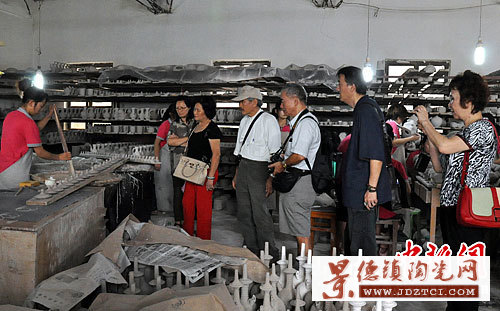 5日至12日,“唐宋名瓷現(xiàn)代傳人與臺灣陶藝名家兩岸交流展”在北京臺灣會館舉行。圖為兩岸陶藝專家在該定瓷公司生產(chǎn)車間參觀。