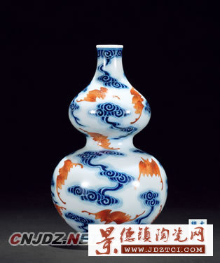 LOT 283 清宣統(tǒng) 青花礬紅描金云蝠紋葫蘆瓶