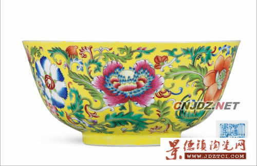 LOT 201 清道光 黃地洋彩纏枝花卉紋碗
