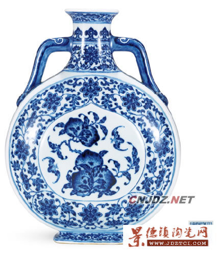 青花中則以LOT 235“清乾隆 青花纏枝蓮開(kāi)光福壽紋如意耳扁瓶”60萬(wàn)落槌價(jià)最高。