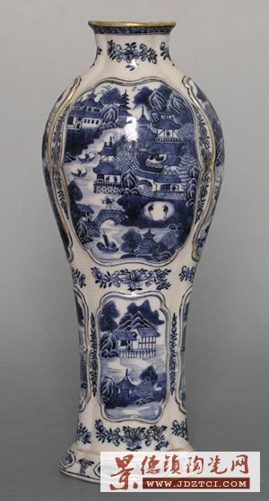 名 稱: 清乾隆 景德鎮(zhèn)窯青花開光山水人物紋四楞瓶