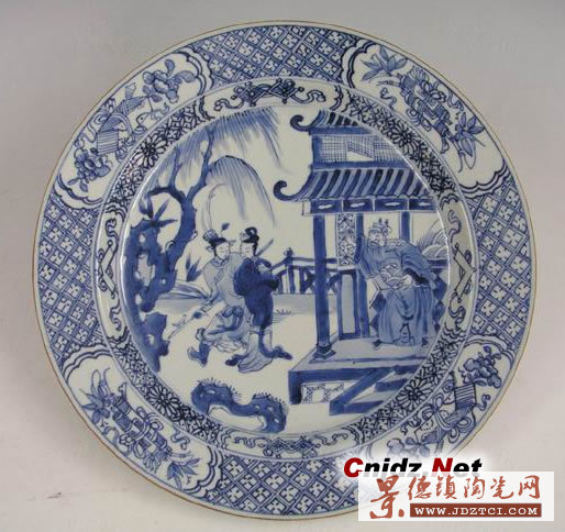 名 稱: 清康熙 景德鎮(zhèn)窯青花呂布戲貂禪圖大盤