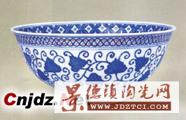碗敞口,弧壁,圈足。足內(nèi)有青花雙圈“彩秀堂制”四字楷書(shū)堂名款。里外均以青花金彩為飾。里心繪一周環(huán)形蓮瓣,內(nèi)繪荷塘蓮花,內(nèi)壁金彩繪纏枝葉紋,內(nèi)口沿繪錦紋,外口沿繪水波紋,外壁繪纏枝苜;。此碗造型、紋飾及金彩描繪均仿永樂(lè)青花式樣,圖案裝飾精美。青花加金,給人以高貴典雅之感。