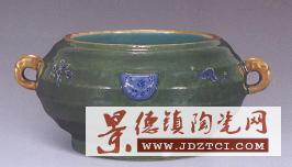 > 景德鎮(zhèn)窯綠釉花卉雙耳洗