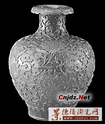 另有一件“松石綠釉剔刻花纏枝蓮紋石榴尊”(見上圖),也是清雍正時(shí)期創(chuàng)燒的新品種的代表作,特別值得一提。松石綠釉又名秋葵綠,因呈色與綠松石相似,故名。此尊通體及底施松石綠釉,釉色清新悅目,紋飾線條清晰,剔刻刀法犀利流暢,底有“大清乾隆年制”篆書款,是珍貴的宮廷陳設(shè)品。