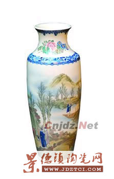 1994年,我國著名陶瓷鑒定專家耿寶昌率專家組來到長沙市博物館,為館藏陶瓷作定級鑒定。當(dāng)市博物館工作人員把這件釉下五彩瓶展現(xiàn)在耿老面前時,這位來自故宮博物院、鑒定過上百萬件陶瓷的專家一反“處世不驚”的常態(tài),興奮地連聲說:“好!好!好!”并當(dāng)即將其定為國家一級文物。這件瓷瓶胎白如玉,其圖案是“釉層下的設(shè)色山水人物畫”,是醴陵釉下五彩的代表作。畫面色彩富麗而不失淡雅,山水深遠(yuǎn)而不失恬靜,人物神情閑適,表現(xiàn)了文人士大夫?qū)μ飯@風(fēng)情的向往。
