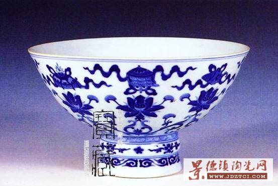 清乾隆 青花蓮托八占祥紋高足碗