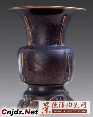 此紫紅釉出戟尊為日本伊豆高原美術(shù)館的珍藏品,高28厘米,口徑23厘米,底徑18厘米。尊的造型仿古代青銅器樣式,喇叭形口,扁鼓形腹,圈足外撇。頸﹑腹﹑足四面均貼條形方棱,俗稱“出戟”。日本全國(guó)博物館界最權(quán)威的機(jī)構(gòu)“日本博物館協(xié)會(huì)”在其主辦的《博物館研究》第32卷第11號(hào)(平成9年11月25日發(fā)行,既1997年)以此尊作為封面,并在目錄頁(yè)有這樣的說(shuō)明:“封面:【紫紅釉尊 鈞窯】宋末元初時(shí)代 13世紀(jì) 高28cm 口徑23cm 底徑18cm 伊豆高原美術(shù)館”。在第40頁(yè)有專文介紹伊豆高原美術(shù)館,列舉了該館的經(jīng)典藏品,代表作品有“狩野探幽”﹑“花鳥人物屏風(fēng)”﹑“紅釉羊頭把手大瓶”﹑“鈞窯紫紅釉尊”等。1997年6月,在日本東京舉辦的“中國(guó)鈞窯珍品展”引起強(qiáng)烈轟動(dòng),日本伊豆高原美術(shù)館長(zhǎng)對(duì)中如云先生這樣說(shuō):“中華民族的歷史悠久﹑文化燦爛,陶瓷藝術(shù)世界聞名,鈞瓷不僅屬于中國(guó)人民,也應(yīng)該為世界人民所擁有! 傳世宋代鈞窯瓷器以各式花盆和花盆托最為多見(jiàn),出戟尊較為少見(jiàn),最為珍貴。上海博物館收藏一件宋代鈞窯月白釉出戟尊,臺(tái)北故宮博物院收藏有宋代鈞窯丁香紫釉出戟尊。