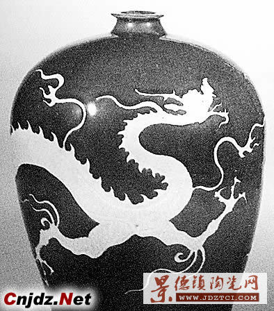 元代藍(lán)釉白龍紋梅瓶