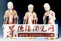 當(dāng)欣賞這組羅漢像時,可感到有一種粗獷、蒼勁、人格化的古拙美。按一般所見宋代瓷塑佛像,衣服均上青白釉,而頭、頸、手均為素胎,但此三尊羅漢像,衣袖內(nèi)可見青白釉,而衣袍正面卻為素胎,頭、手也無釉,細(xì)辨表面又不似脫釉(一般影青瓷青白釉不會脫釉),是反瓷,還是當(dāng)時未上釉的殘次品,待考。