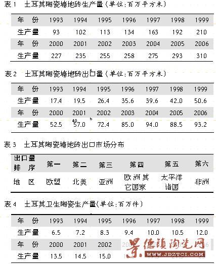 在陶瓷墻地磚領(lǐng)域,土耳其是全球第5大出口國(guó),僅2005年土耳其出口陶瓷墻地磚總量達(dá)89百萬(wàn)平方米,其主要出口是歐洲和美國(guó)。