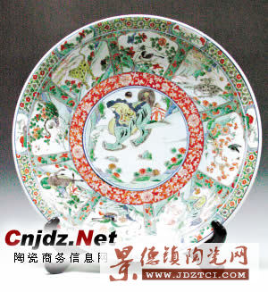 大盤口徑53.9厘米,采用主題紋飾加錦地開窗形式進(jìn)行裝飾,八個(gè)開光小窗內(nèi)分別繪制了傳統(tǒng)的吉祥動(dòng)物圖案麒麟、喜鵲登梅、太獅少獅等,盤中心的主體圖案繪一只巨型獅子,頭頂王字,睜目回首,眼神聚集于身前一塊形似烏龜?shù)氖^上。繪畫工匠對(duì)動(dòng)物眼神的勾畫精妙傳神,使獅子將石頭誤以為是烏龜?shù)纳袂檐S然盤上,不僅讓獅子變得栩栩如生,也為畫面增添了許多內(nèi)涵與情趣。