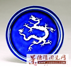 | 元 藍釉白龍紋盤 |
