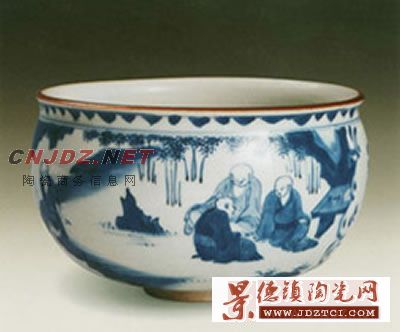 清順治十四年 景德鎮(zhèn)窯青花人物凈水碗