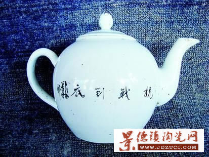 關(guān)明成說,口號(hào)陶瓷,就是將不同歷史時(shí)期的各種政治主張、政治綱領(lǐng)用簡(jiǎn)潔明快的文字、朗朗上口的語(yǔ)言,刻印或書寫在瓷土上的陶瓷。