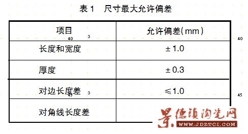 在離陶瓷板角點(diǎn)5mm處,用精度為0.5 mm的直尺或卷尺進(jìn)行測量,計算對邊的平均值與工作尺寸的偏差。