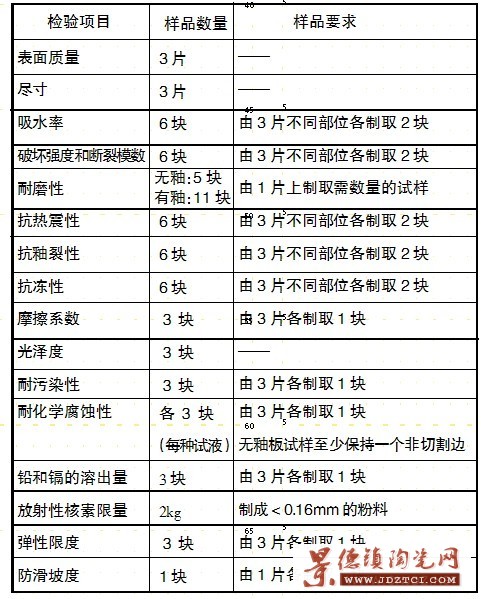 出廠檢驗項目包括表面質(zhì)量、尺寸、吸水率、斷裂模數(shù)與破壞強(qiáng)度。