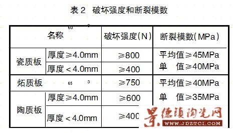 破壞強(qiáng)度和斷裂模數(shù)應(yīng)符合表2的規(guī)定。