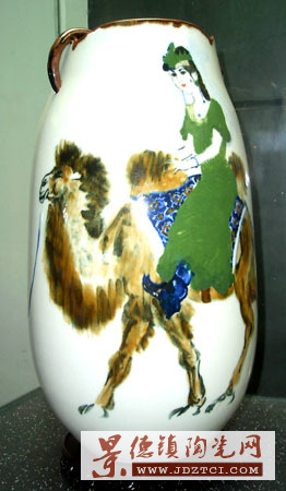 展品中的高溫顏色釉裝飾,是李菊生經(jīng)歷了多年艱難探尋,終于成功掌握了高溫顏色釉特點,并用于裝飾人物的衣裙飾物、山石、鳥獸。這就大為拓展了陶瓷藝術(shù)的裝飾材料領(lǐng)域,極大地豐富了陶瓷藝術(shù)的裝飾語匯和表現(xiàn)手段,將藝術(shù)陶瓷的裝飾材質(zhì)提升了一個檔次。