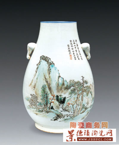 淺絳彩山水象耳尊