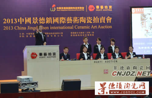 雖然天氣依舊涼爽,但是10月20日下午,紫晶會堂里許多人都脫去了厚厚的外套,為每一次成功的拍賣鼓掌,吶喊,盡情加入了2013景德鎮(zhèn)瓷博會的重頭戲之一——由瓷博會執(zhí)委會辦公室、景德鎮(zhèn)市文廣新局主辦,景德鎮(zhèn)華藝拍賣有限公司和景德鎮(zhèn)陶瓷民俗博物館共同承辦2013中國景德鎮(zhèn)國際藝術陶瓷拍賣之中。