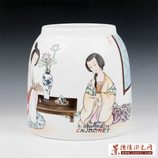 大膽的留白配上極致的細(xì)節(jié),一個(gè)個(gè)既生動(dòng)又充分給予想象空間的仕女便躍然瓷上,當(dāng)真只有親眼見(jiàn)過(guò)這樣的作品,才能了解細(xì)節(jié)做到極致才精彩!